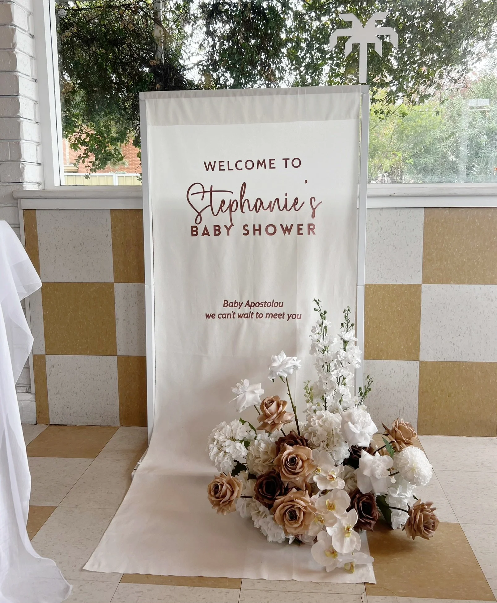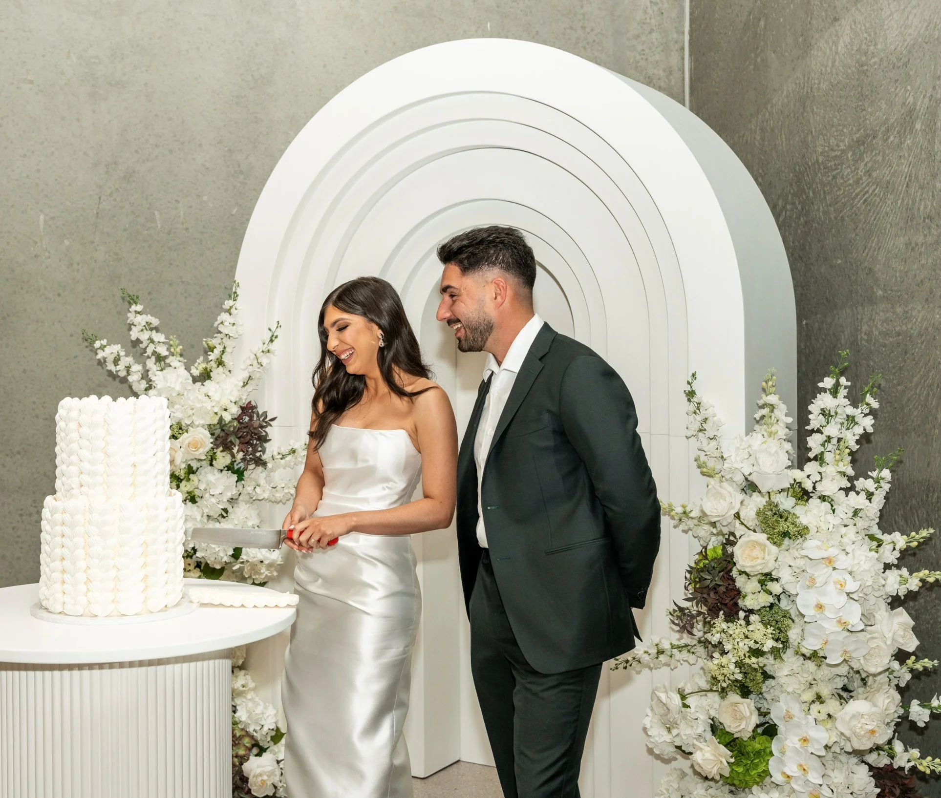 Our clients will usually select custom made faux florals for backdrops, welcome sign, table centrepieces, plinths, gift table, bar and cake table!