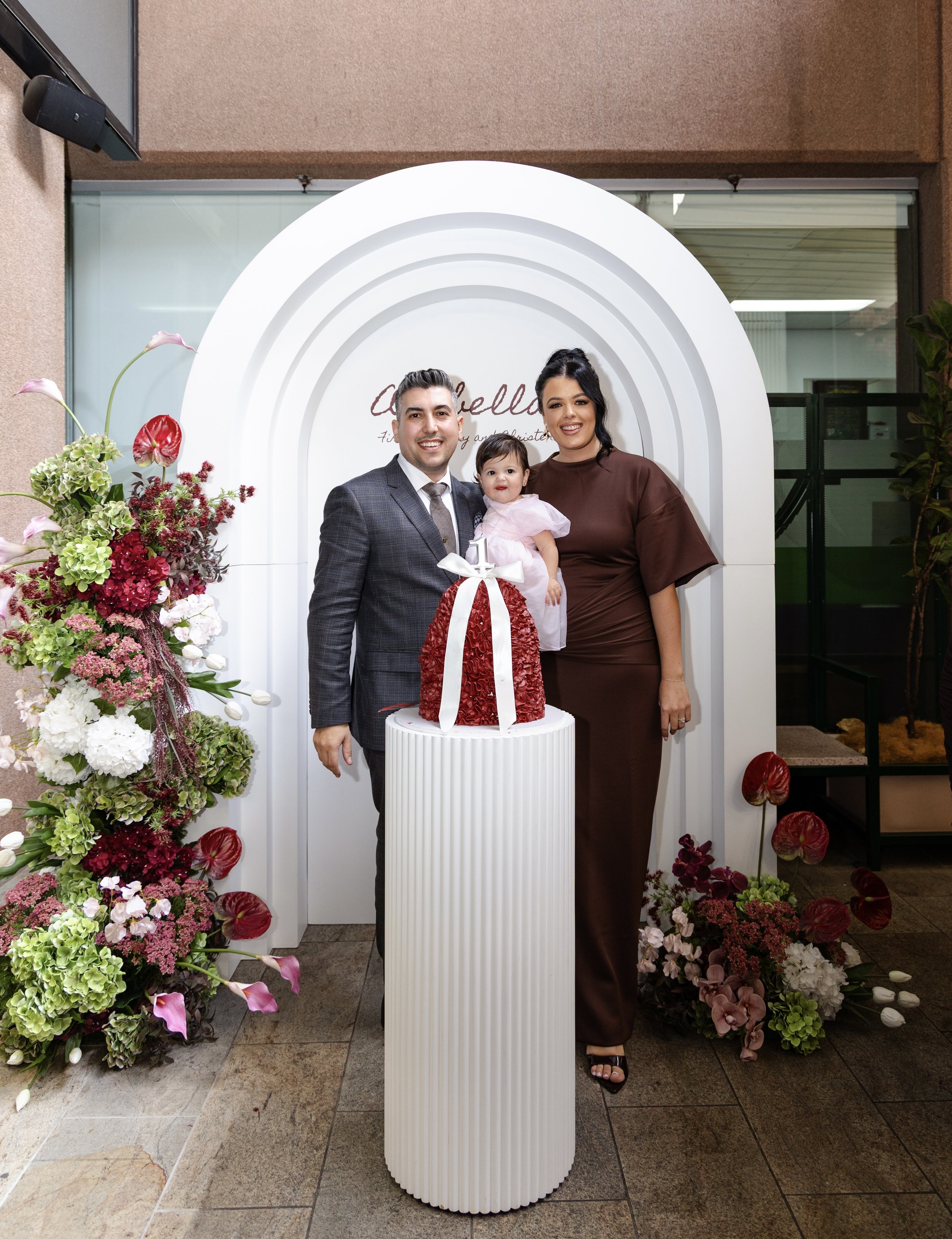 Our clients will usually select custom made faux florals for backdrops, welcome sign, table centrepieces, plinths, gift table, bar and cake table!